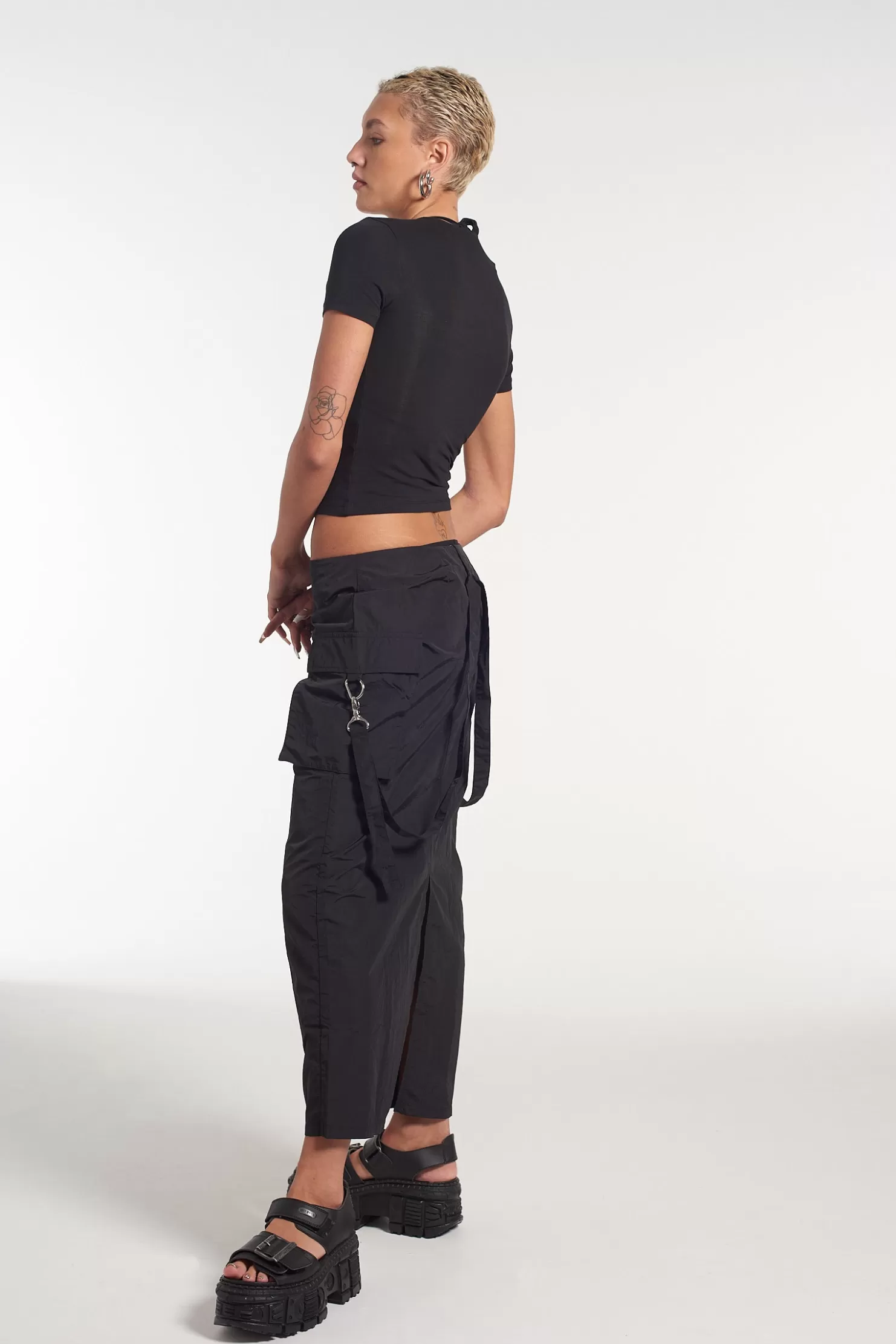 The Ragged Priest Black Parachute Style Maxi Skirt With Split Detail.Hardware Harness Attachmentsnon Stretch, Woven Ma…