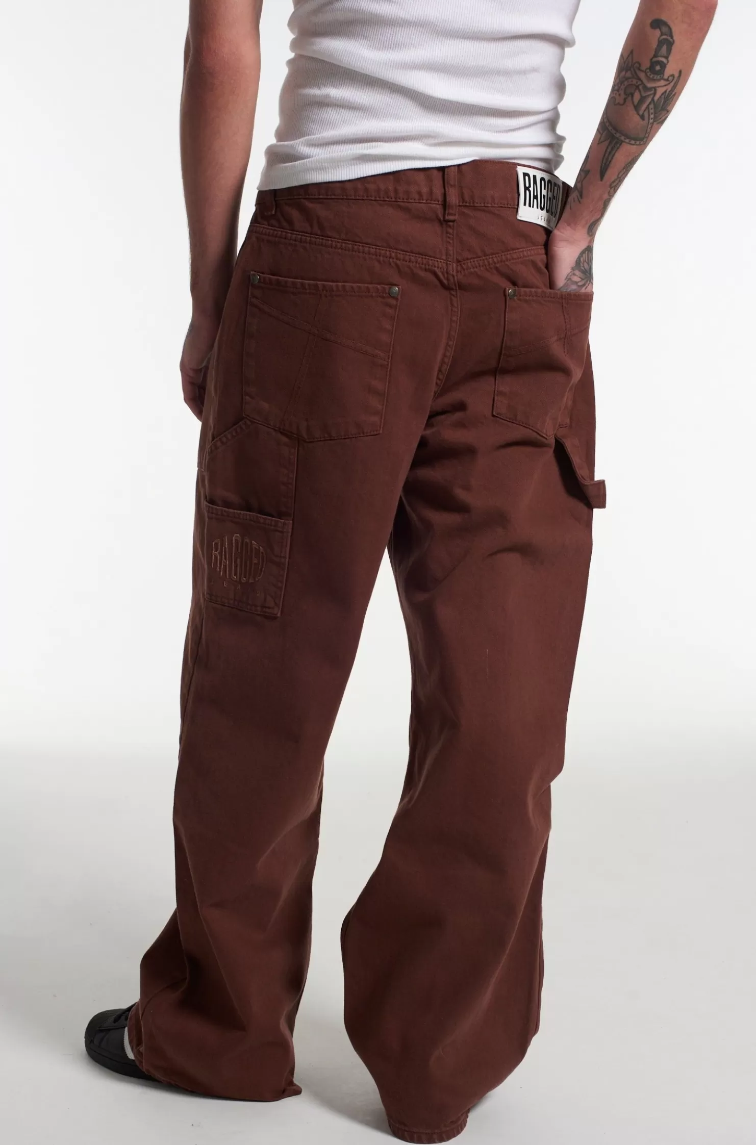 The Ragged Priest Brown Denim Wide Leg Baggy Jean With Utility Strap Detail. Non Stretch Rigid Denimbaggy Wide Legcarp…