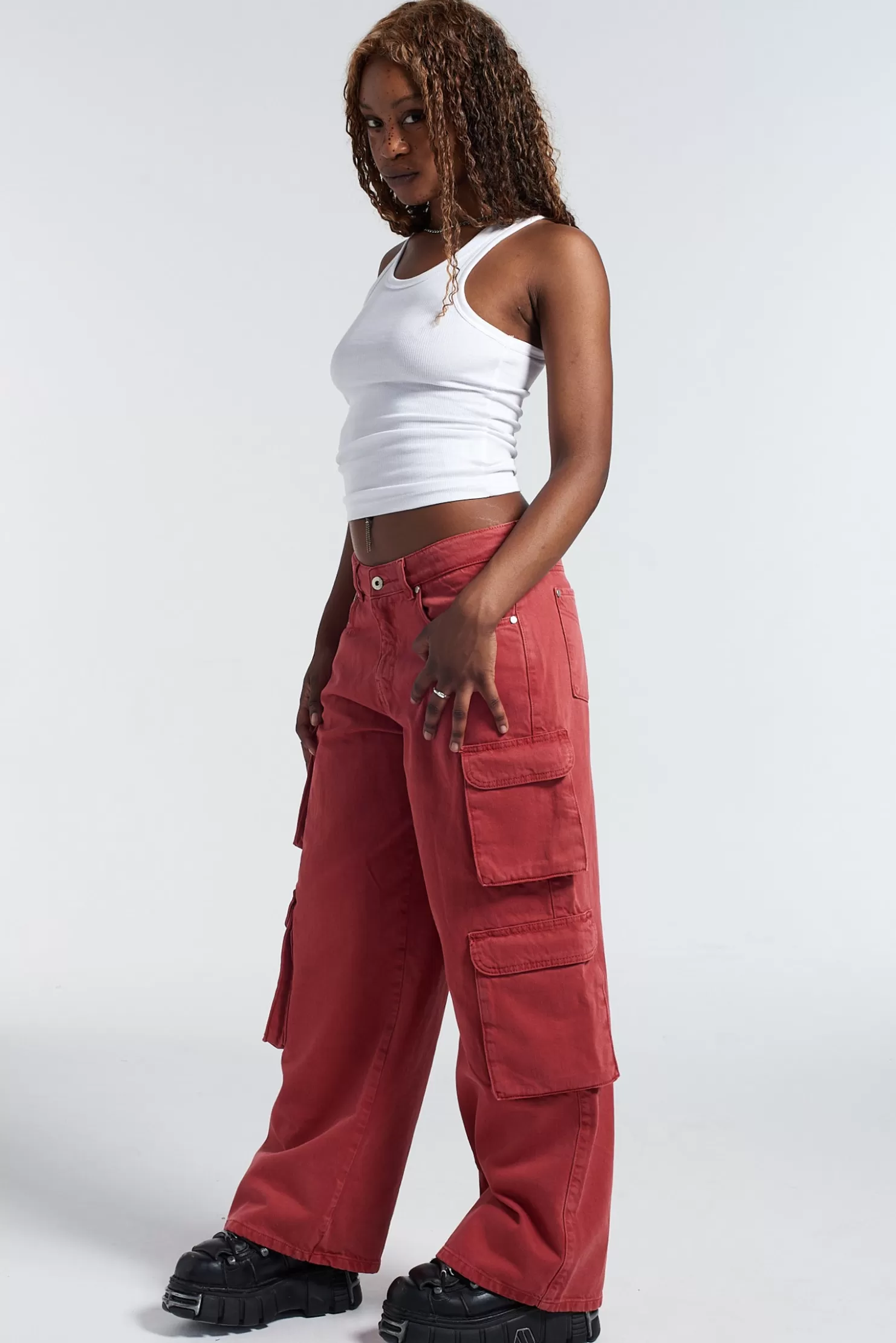 The Ragged Priest Red Cargo Low Rise Jeans In Our Classic Release Jeans Fit. No Stretch Rigid Denimlow Rise Ultra Ba…