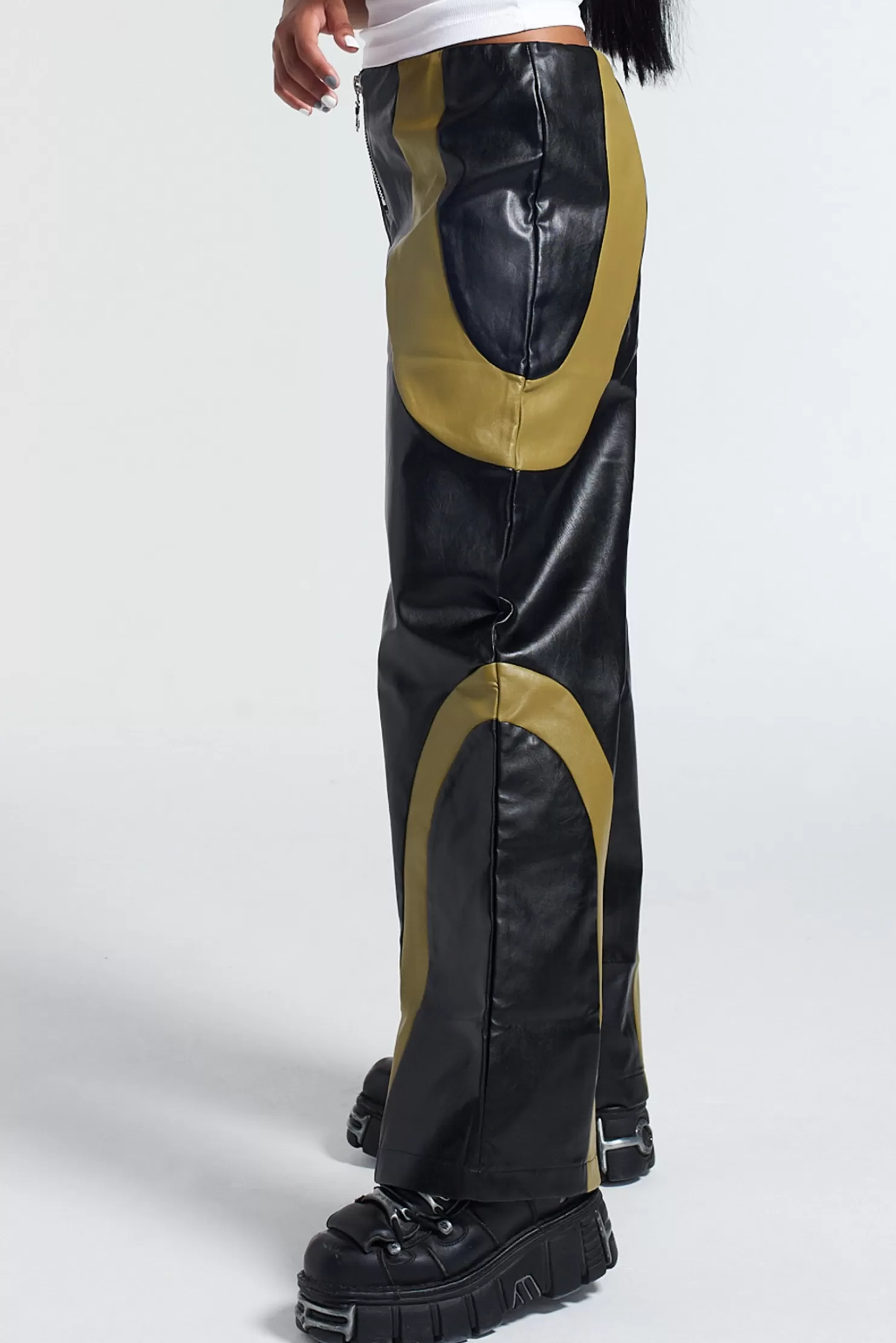 The Ragged Priest Straight Leg Trouser With Green Circular Hip And Shin Panel.No Stretch Low – Mid Rise Wide, Baggy Le…