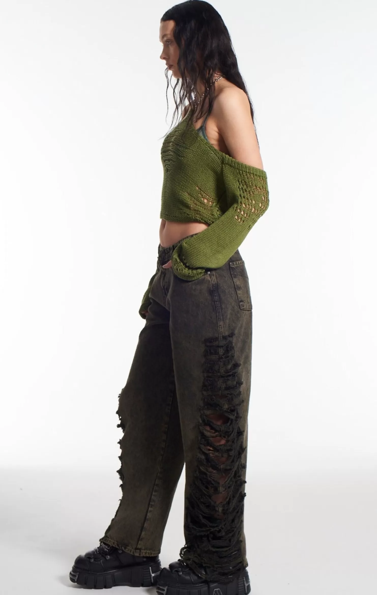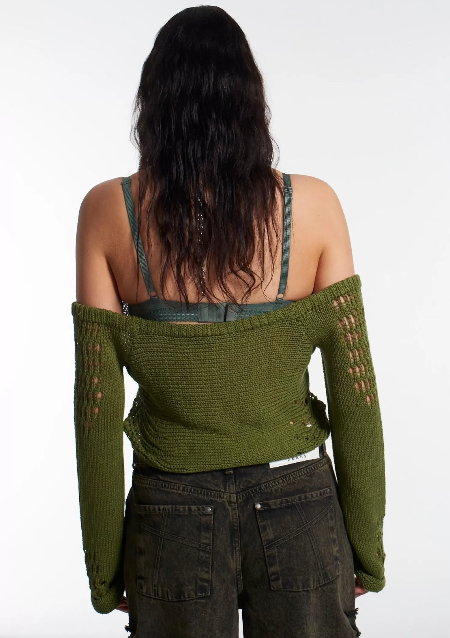 The Ragged Priest Khaki Halter Neck Ladder Knit Top With Chain. Cold Shoulder Designladder Knitchain Halter Neck With Clipselect Your Normal Sizelong Sleevemachine Wash According To Instructions On Care Label100% Acrylicmodel Wears A Size Uk 10 And Is 5’7 In Height.