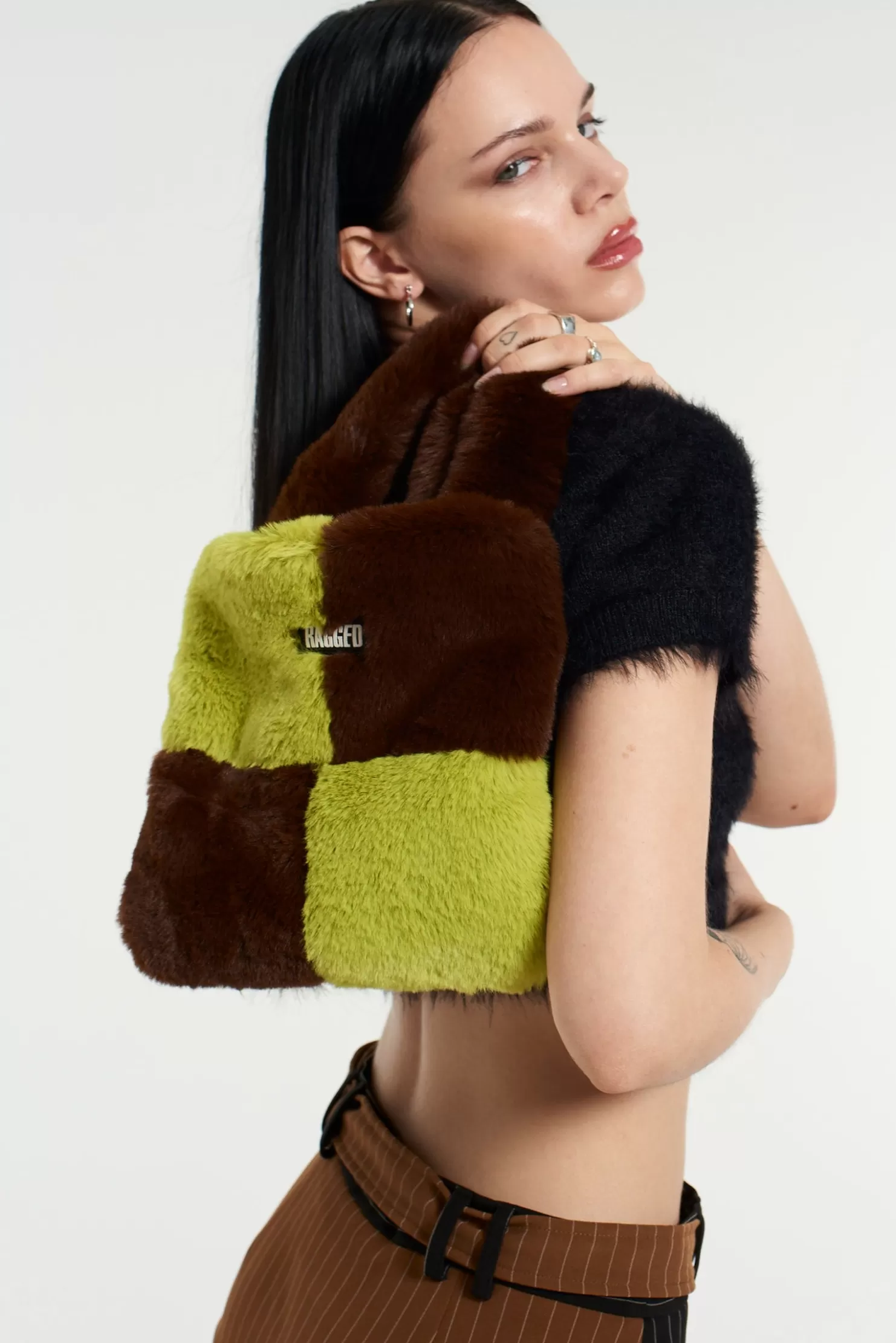 The Ragged Priest Faux Fur Checkerboard Pattern Grouch Bag.Non Stretch Soft Fabricmagnetic Fasteningone Sizecolours Include: Brown And Greenwash According To Instructions On Care Labelsmall “Ragged” Rubber Tab On Frontouter: 100% Polyester Lining: 100% Polyester