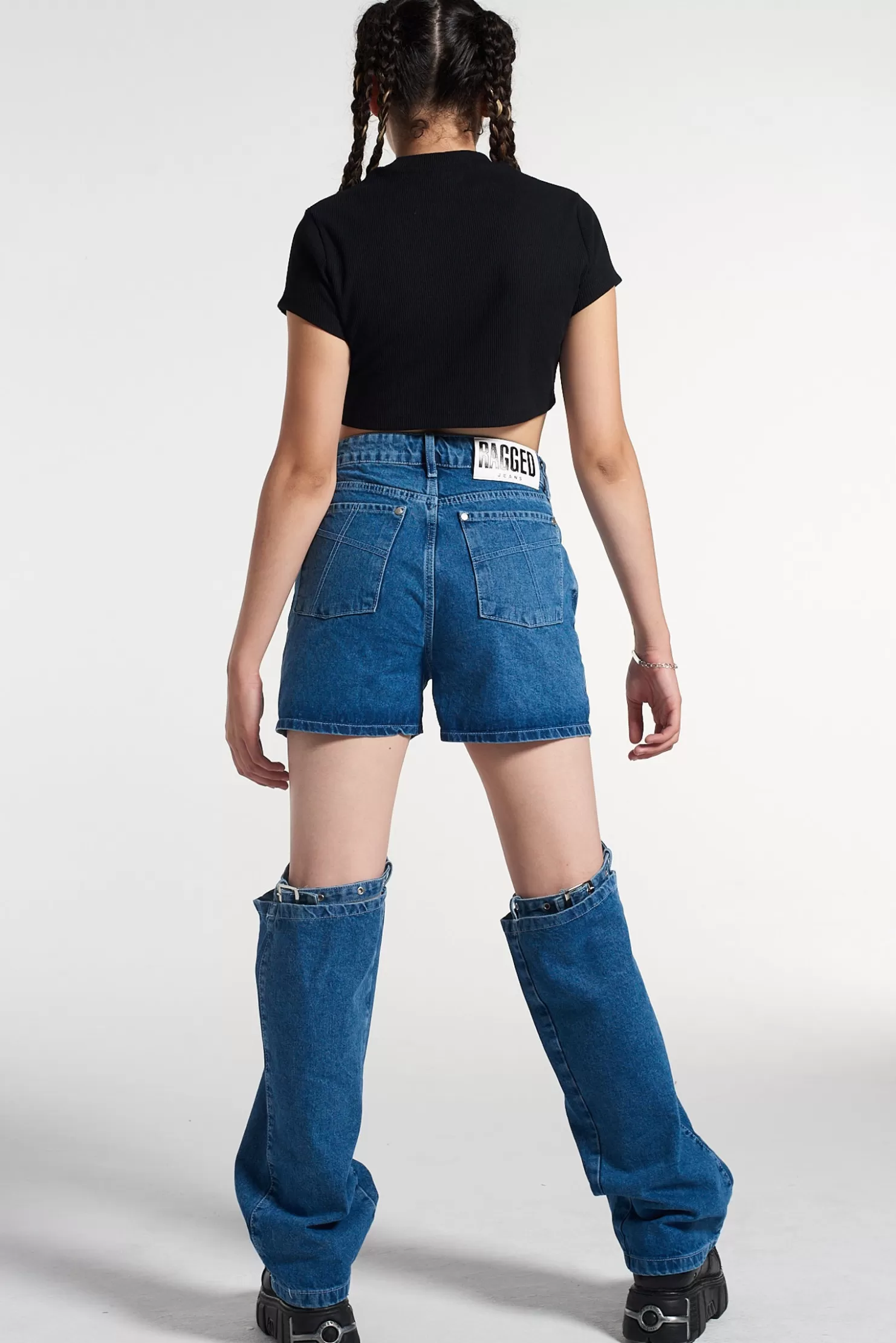 The Ragged Priest Mid Blue Buckle Strap, Chap Style Jeans In Our Classic Dad Fit. No Stretch Rigid Denimhigh Rise Str…