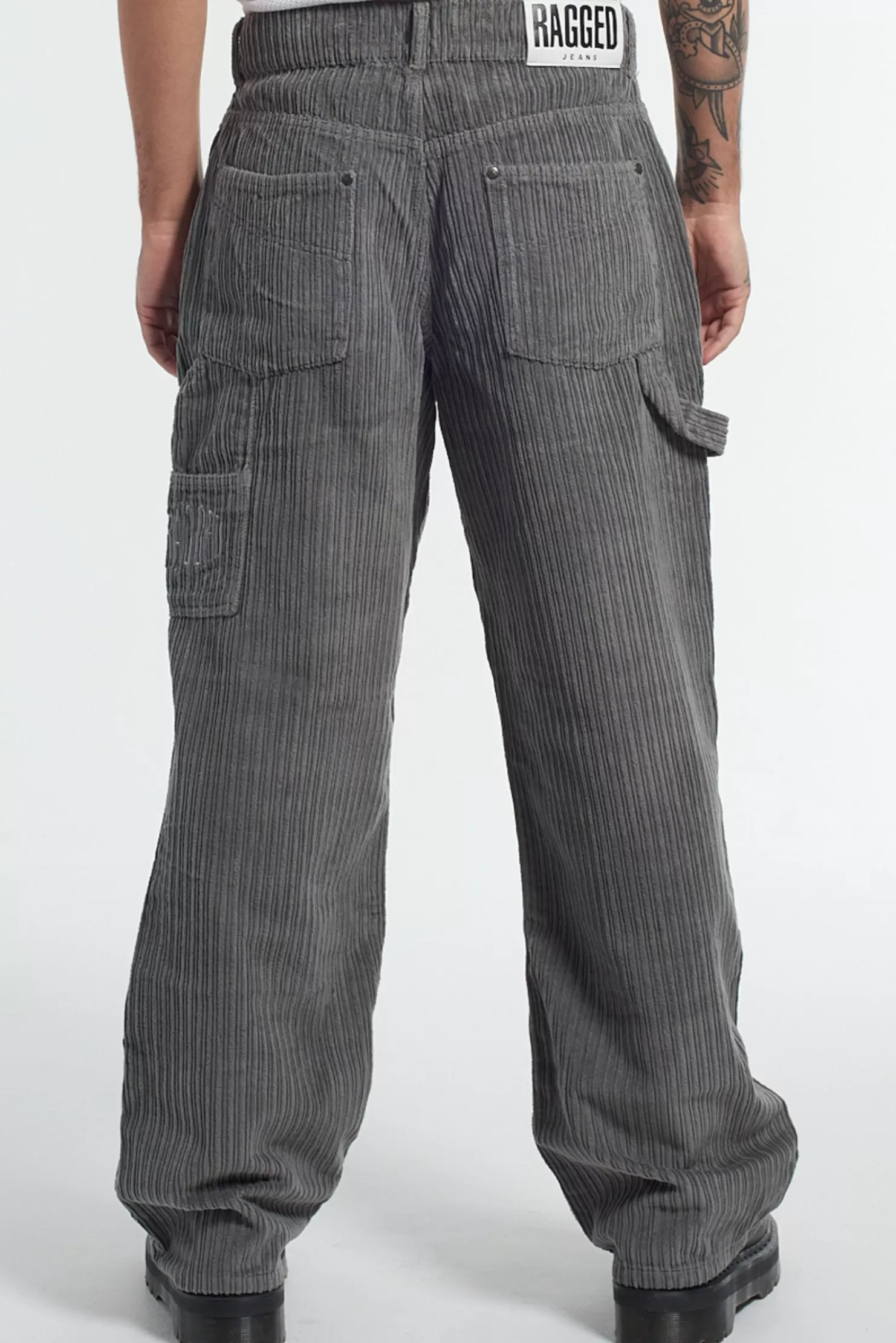 The Ragged Priest Jumbo Cord Skate Jean In Grey Corduroy With Classic “Ragged Jeans” Vegan Belt Loop Back Tab.No Stretch…