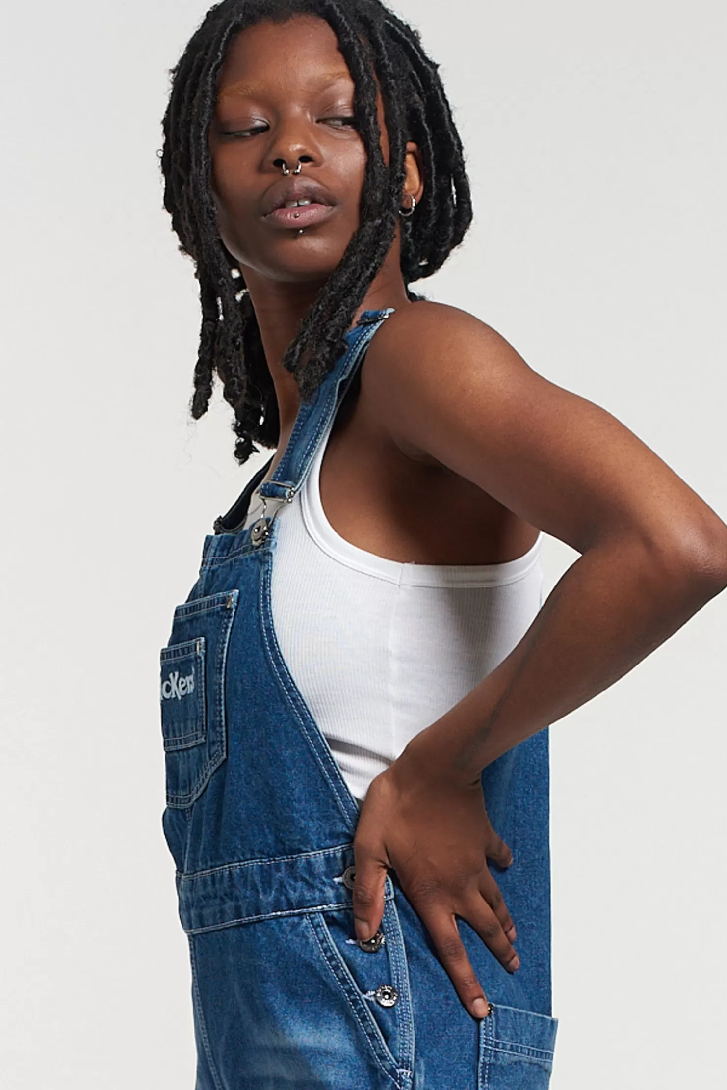 Kickers Classics Slouchy And Baggy Mid Blue Denim Dungarees With White Central Kickers Embroidered Logo.⁃ Kickers Classics Branded Tab.⁃ Uk Sizes 24″, 26″, 28″, 30″, 32″, 34″, 36″, &Amp; 38″.⁃ Model Is 5Ft 7” And Wears A Size Uk Small.