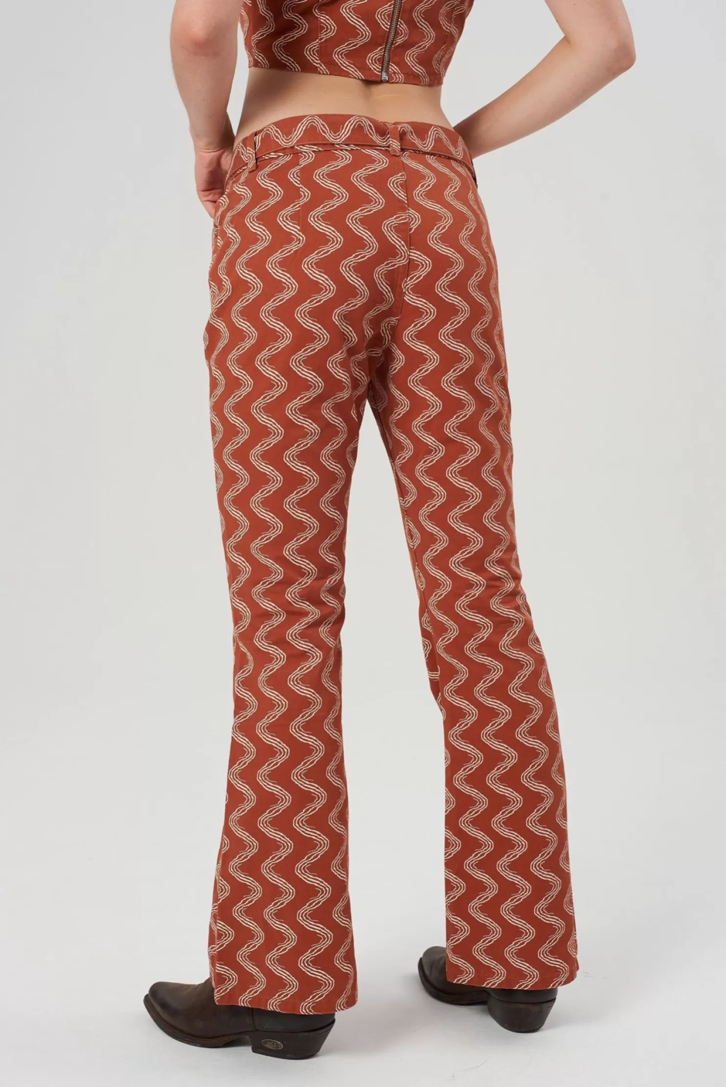 The Lure Pant Is Our Rust Wiggle Print Pant With Circular Buckle Belt. • 50% Recycled Cotton• 50% Cottonmodel Is 5’10 And Wears A Uk Size 8.•By Using At Least 48% Recycled Cotton Over Virgin Cotton, This Item Was Made Using Less Water, Dye, Energy And Waste.For More Information On Milk It’S Environmental Impact – Please See Our Website: Https://Milkitclothing.Com/Pages/Environmental-Impact
