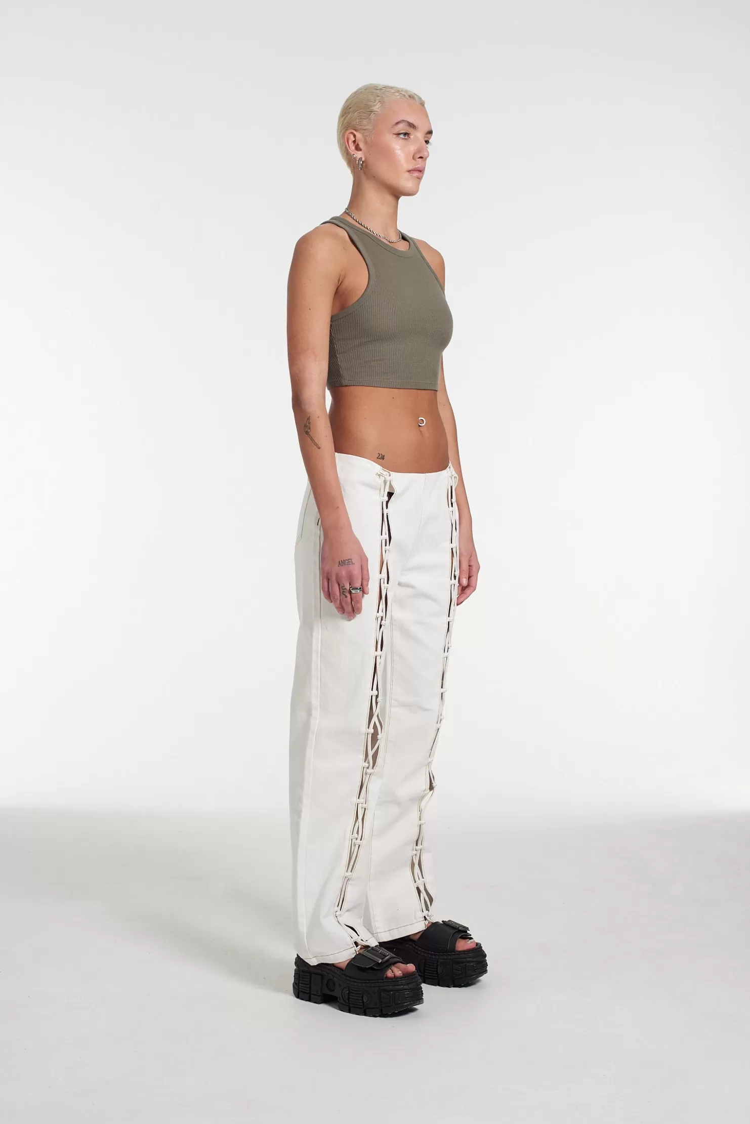 The Milk It Wilderness Lace Front Jean Are Our White Straight Leg Jeans With Cut Out Front Panel And Lace Up Detail.•…
