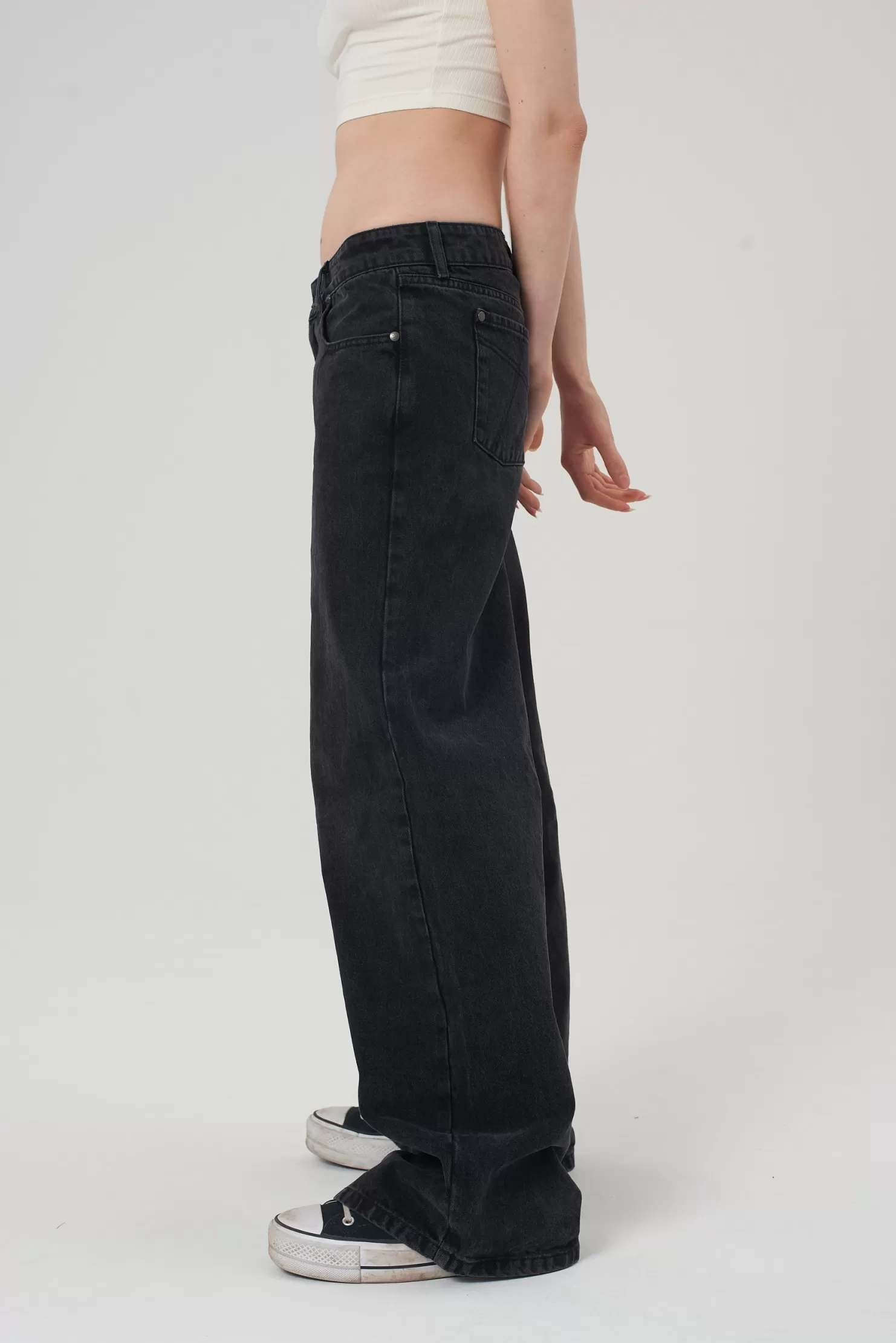 Releaseultra-Low Rise | Slouchy Fit | Wide Legragged Jeans Low Rise Baggy Wide Leg Jeans In Charcoal With “Ragged Je…