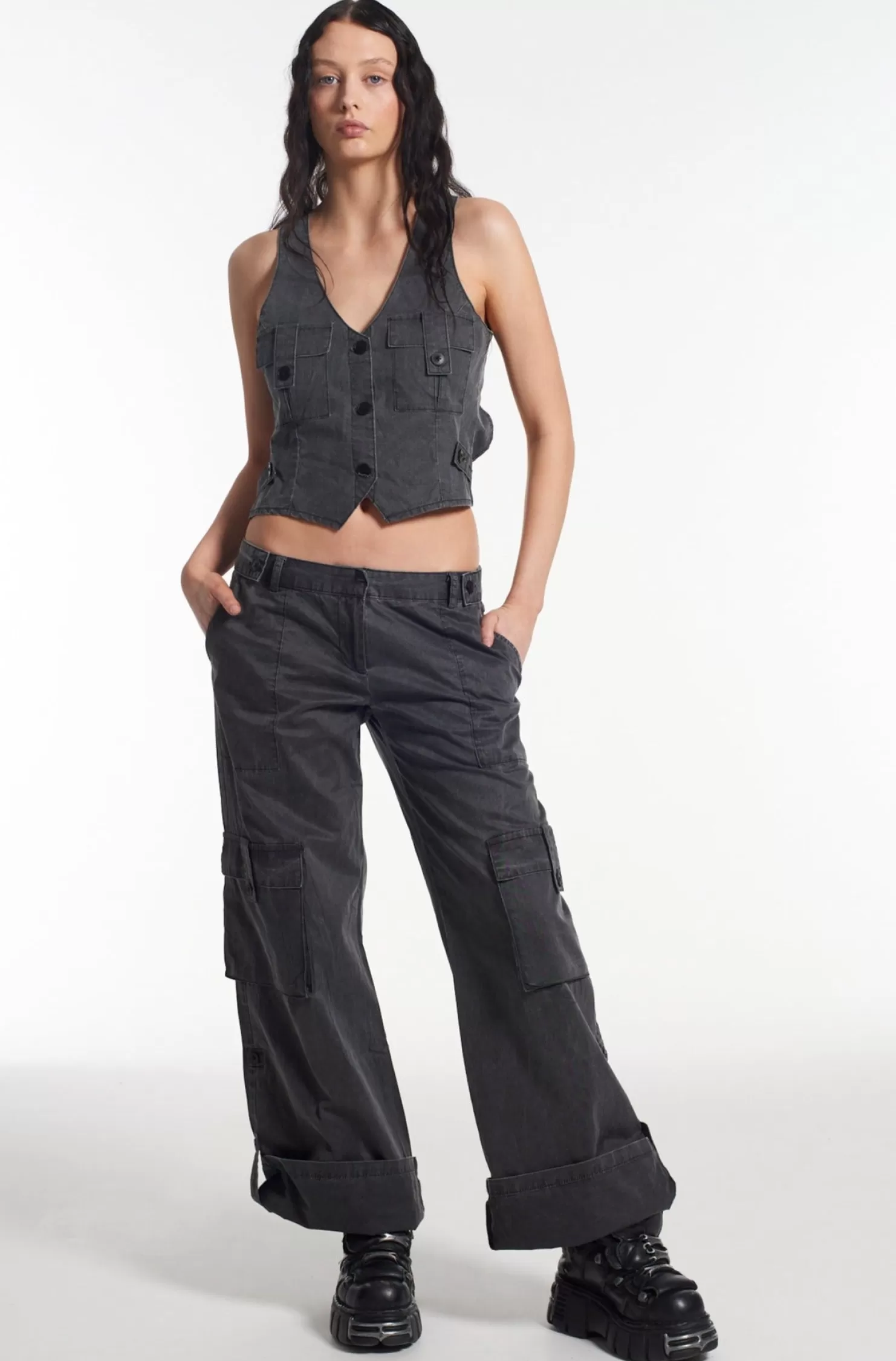 The Ragged Priest Black Drill Utility Combat Pant. Slouchy Fit, Low Risecotton Drill Materialcombat Pocketsadjustable R…