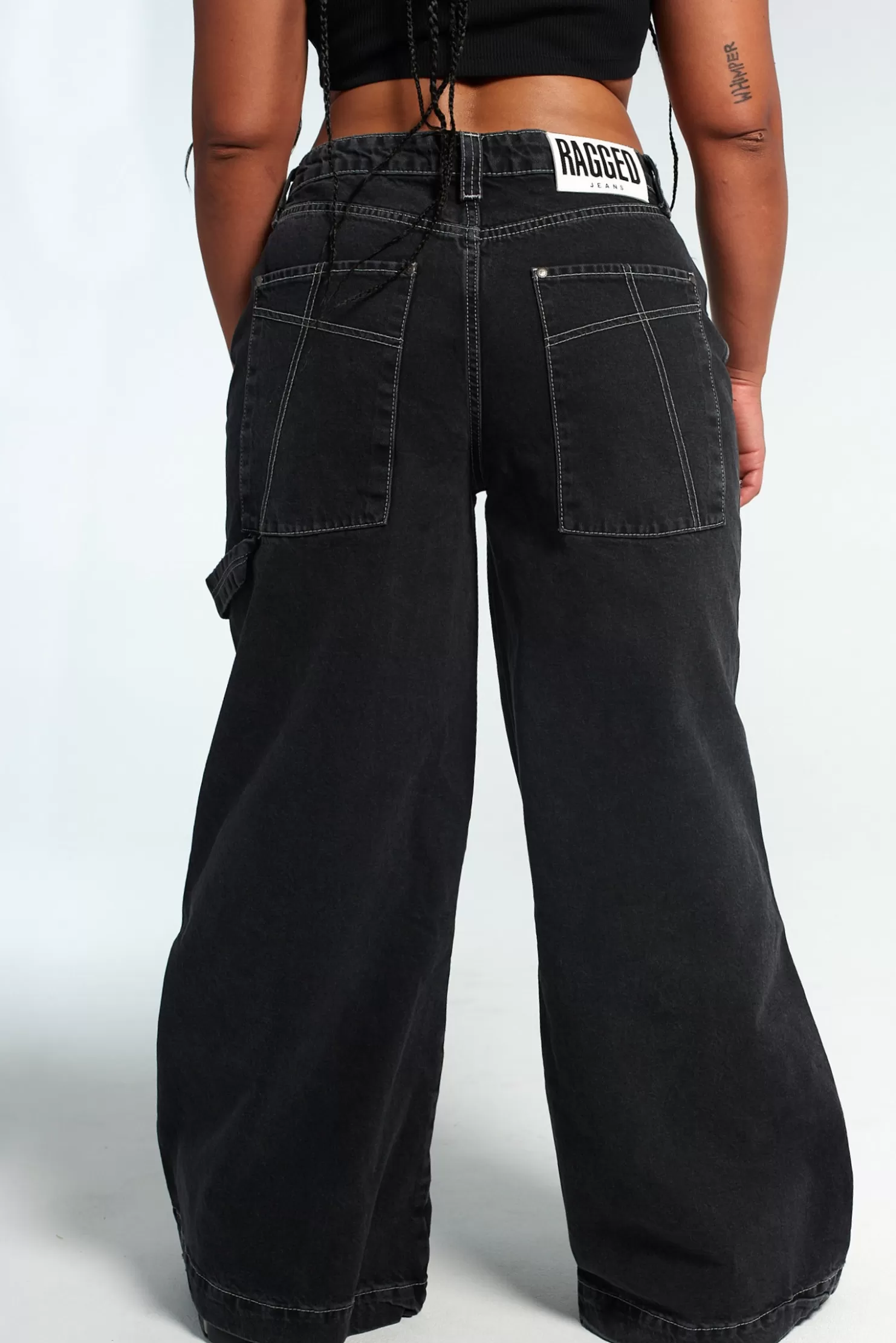 The Ragged Priest Signature Sweeper Jean Fit In Our Charcoal Wash Organic Denim With Classic “Ragged Jeans” Vegan Belt Loop Back Tab.No Stretch Rigid Denimmid Rise Ultra Wide Legslouchy Fitdesigned To Sweep The Floorselect Your Normal Waist Sizeother Colours Availablesignature Cross Stitch On Back Pocketsavailable In Waist Sizes 24 Inches – 36 Inches. Inseam 82Cmmachine Wash According To Instructions On Care Label100% Organic Cotton Model 1 Is 5’8 And Is Wearing 26″.Model 2 Is 5″5 And Is Wearing 32″. Find Your Fit – View Our Denim Fit Guide