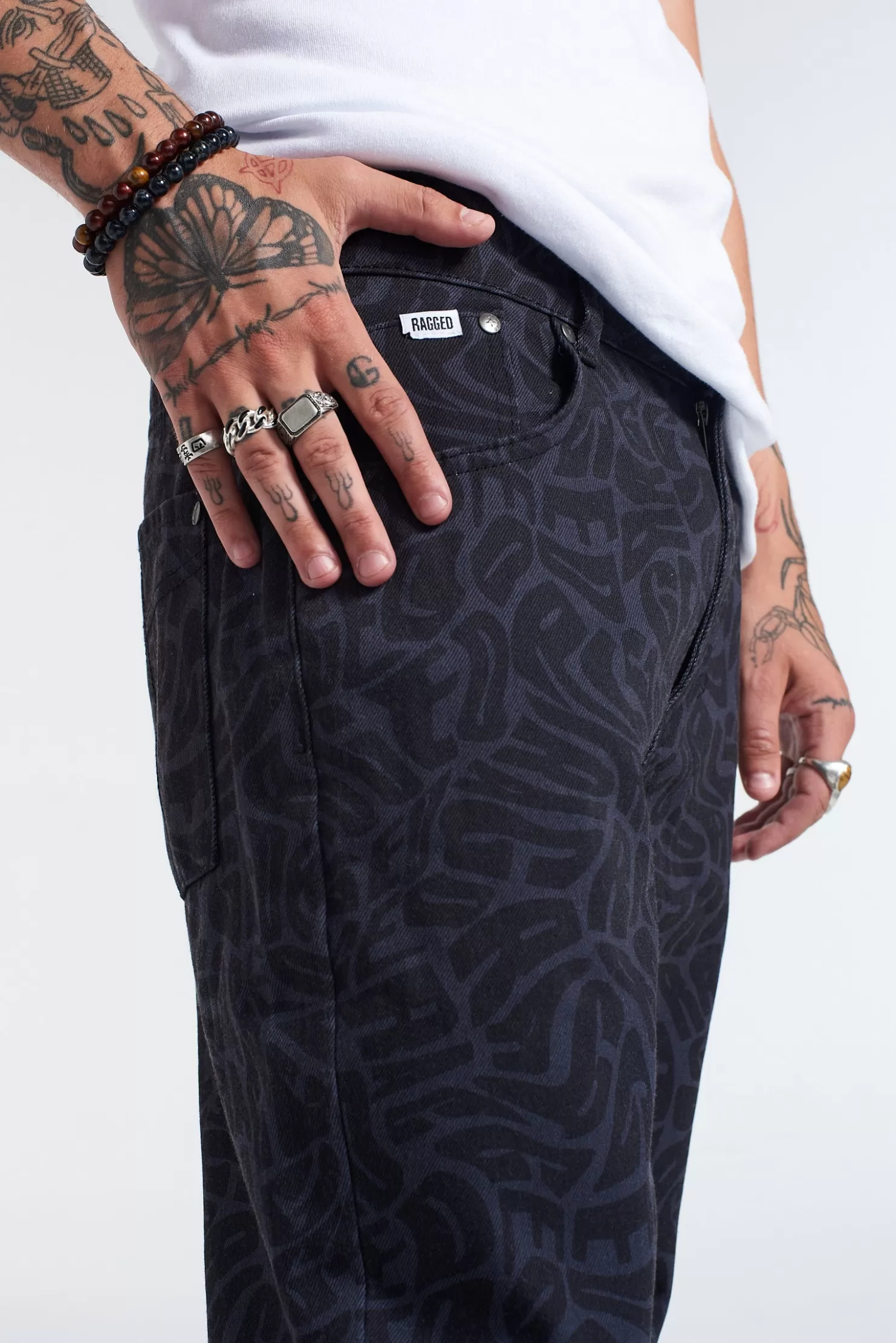 The Ragged Priest Men’S Logo Print Jeans In Charcoal And Grey.Non Stretch Rigid Denimstraight Legselect Your Normal Si…