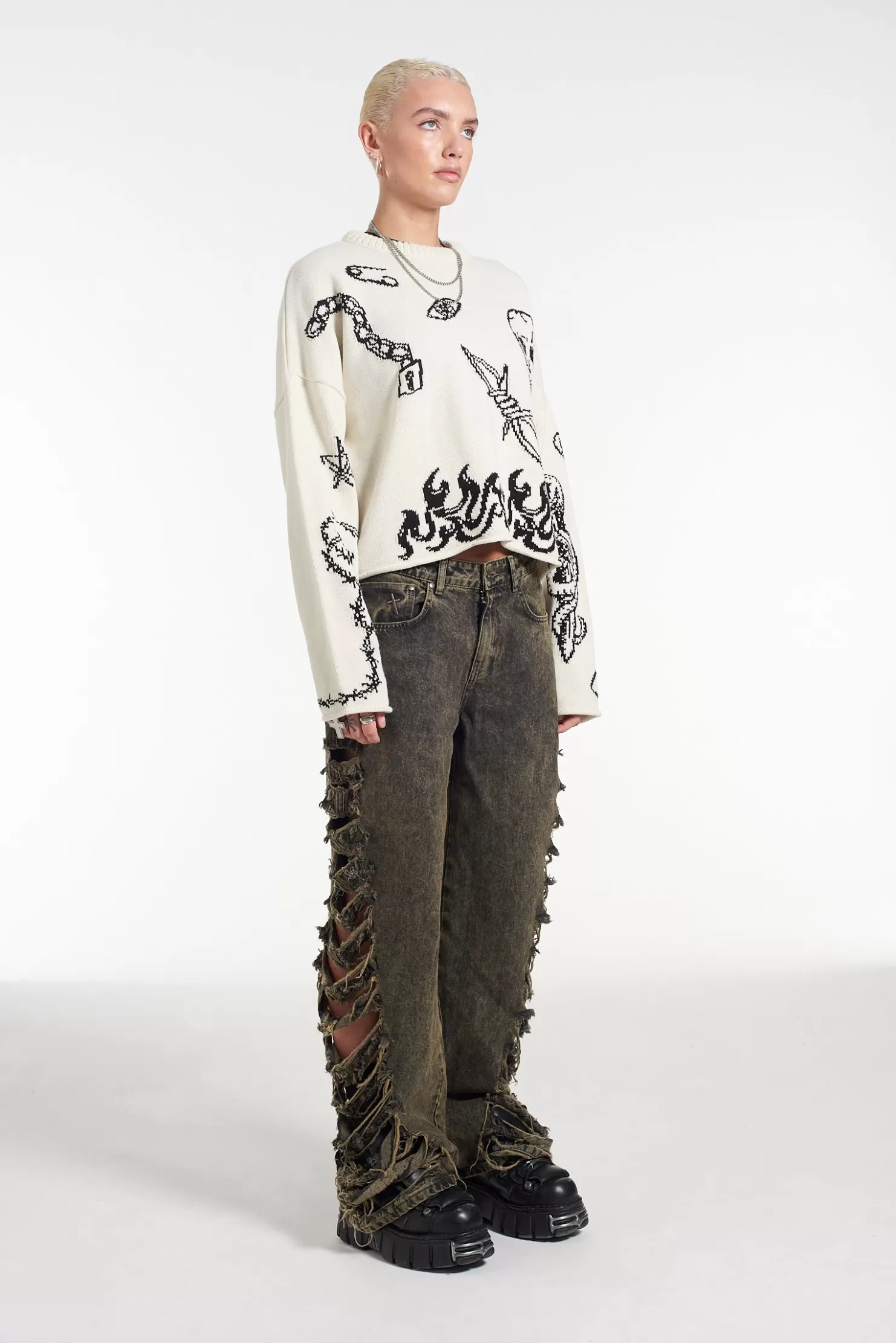 The Ragged Priest White Oversized Knit With All Over Tattoo Inspired Designs. Available In New Extended Sizingmedium St…