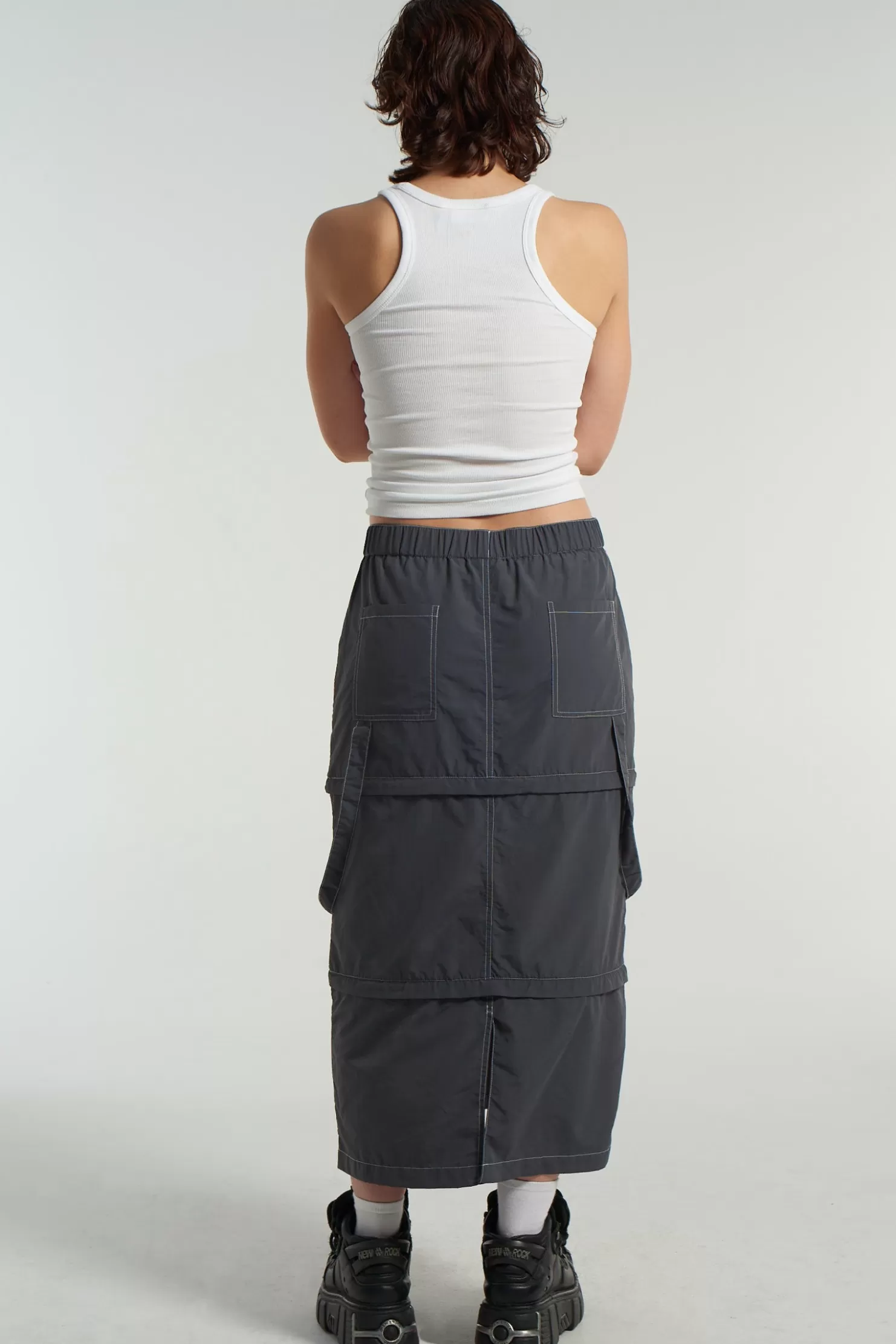 The Ragged Priest Multi Layer Charcoal Cargo Skirt With Combat Style Side Pockets, Continuous Utility Straps And Trigger Hook Detail.Can Wear At Three Different Lengths Non Stretch, Drill Cotton Fabricmid – Low Rise Select Your Normal Sizezip Up Fasteningmachine Wash According To Instructions On Care Label100% Cotton Model Is 5’6 And Is Wearing A Size 8.