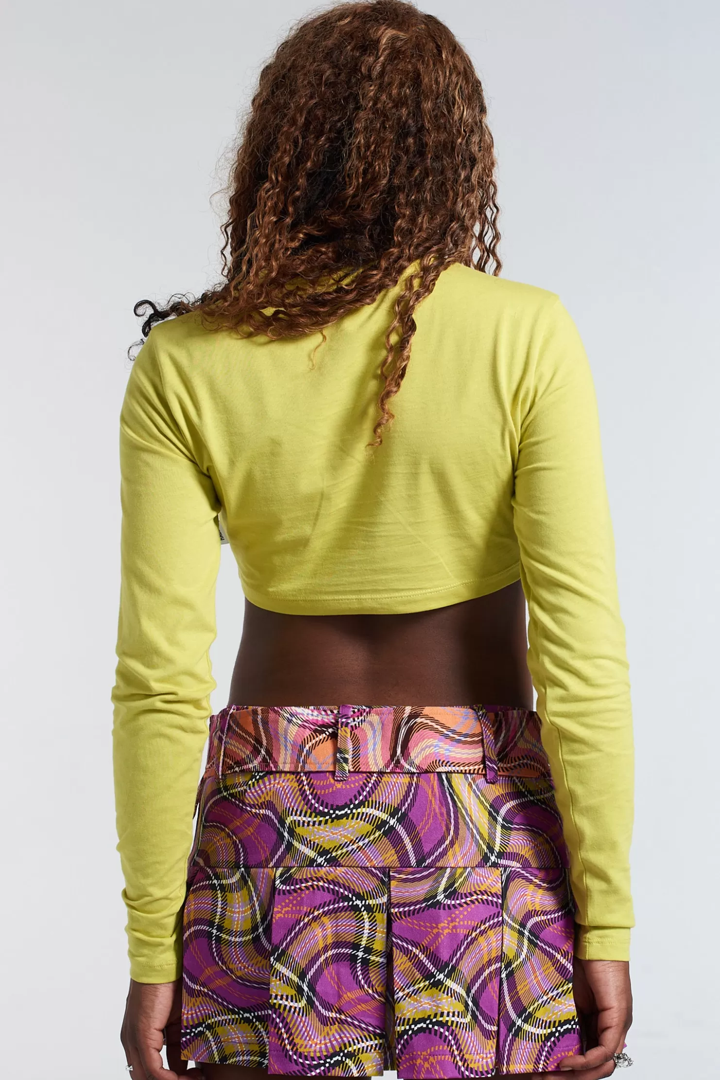 The Ragged Priest Lime Green Long Sleeve Cropped Top With Diamante Alien. Cropped Lengthlow – Mid Stretch Fabriccrew Ne…
