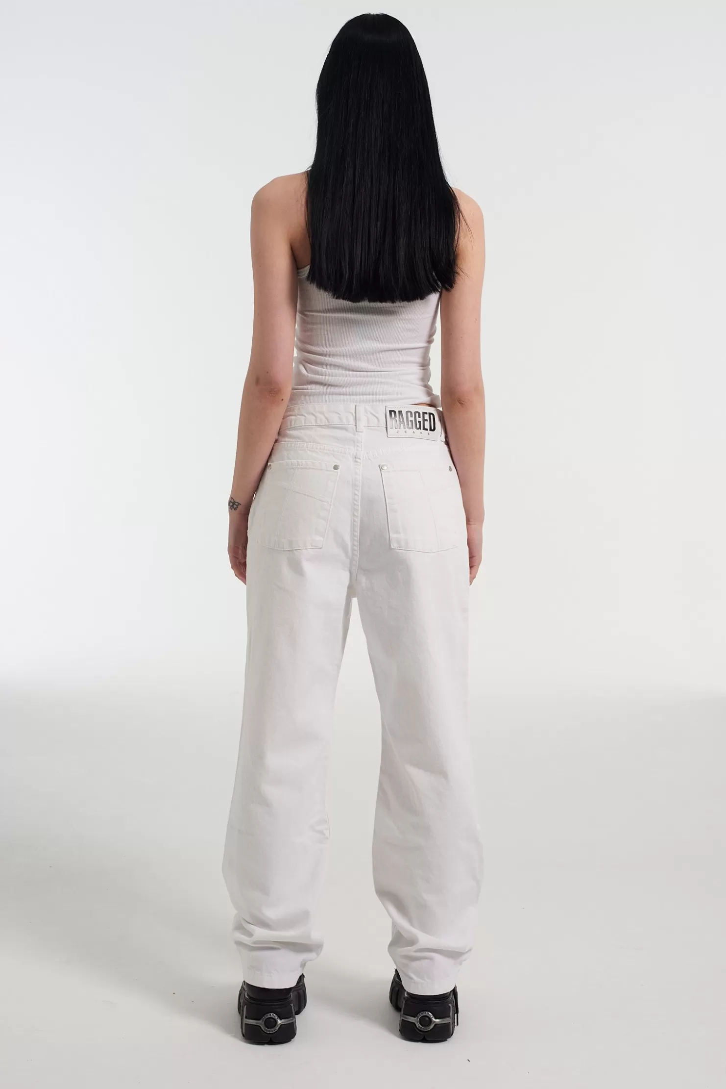 The Ragged Priest Signature Dad Jean Fit In Our White Wash Denim With Classic “Ragged Jeans” Belt Loop Back Tab.No Stre…