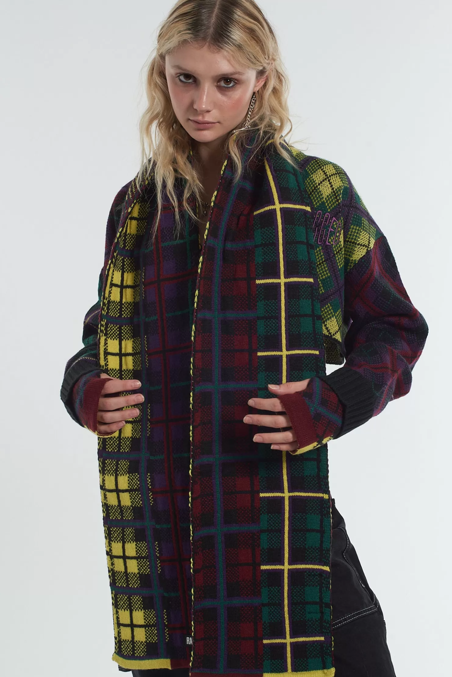 The Ragged Priest Disorder Scarf In Soft Knitted Fabric With Side “Ragged” Logo On Multi Check Print In Different Colou…