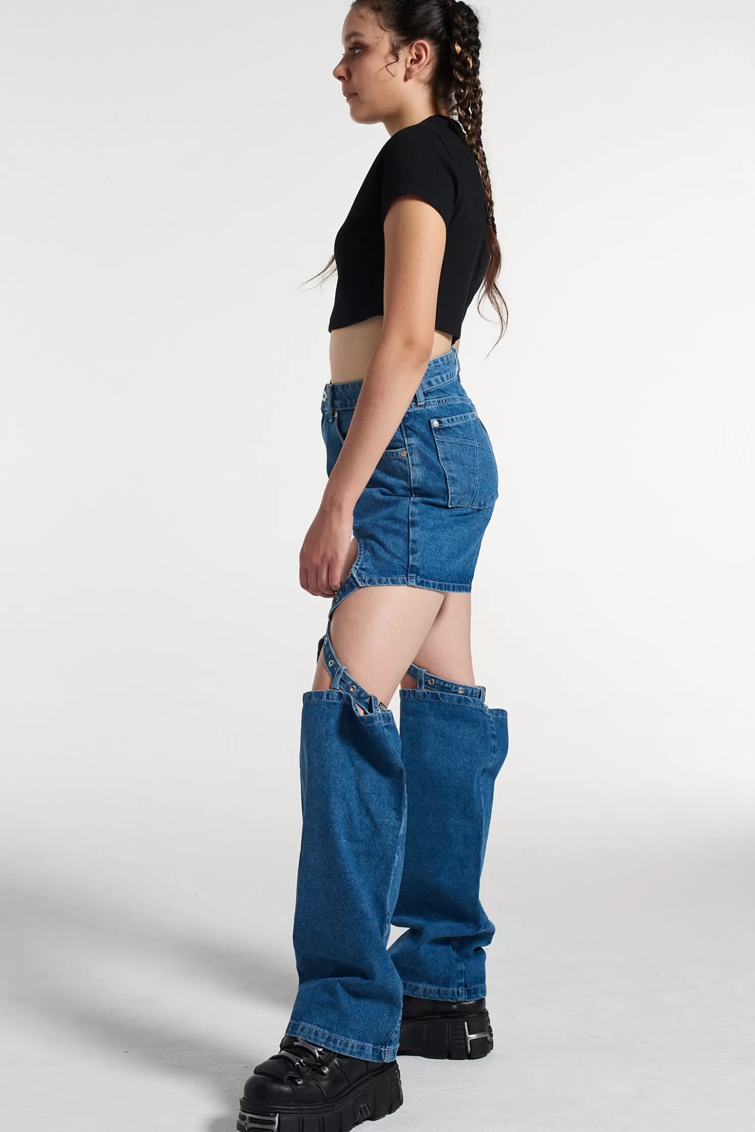 The Ragged Priest Mid Blue Buckle Strap, Chap Style Jeans In Our Classic Dad Fit. No Stretch Rigid Denimhigh Rise Str…