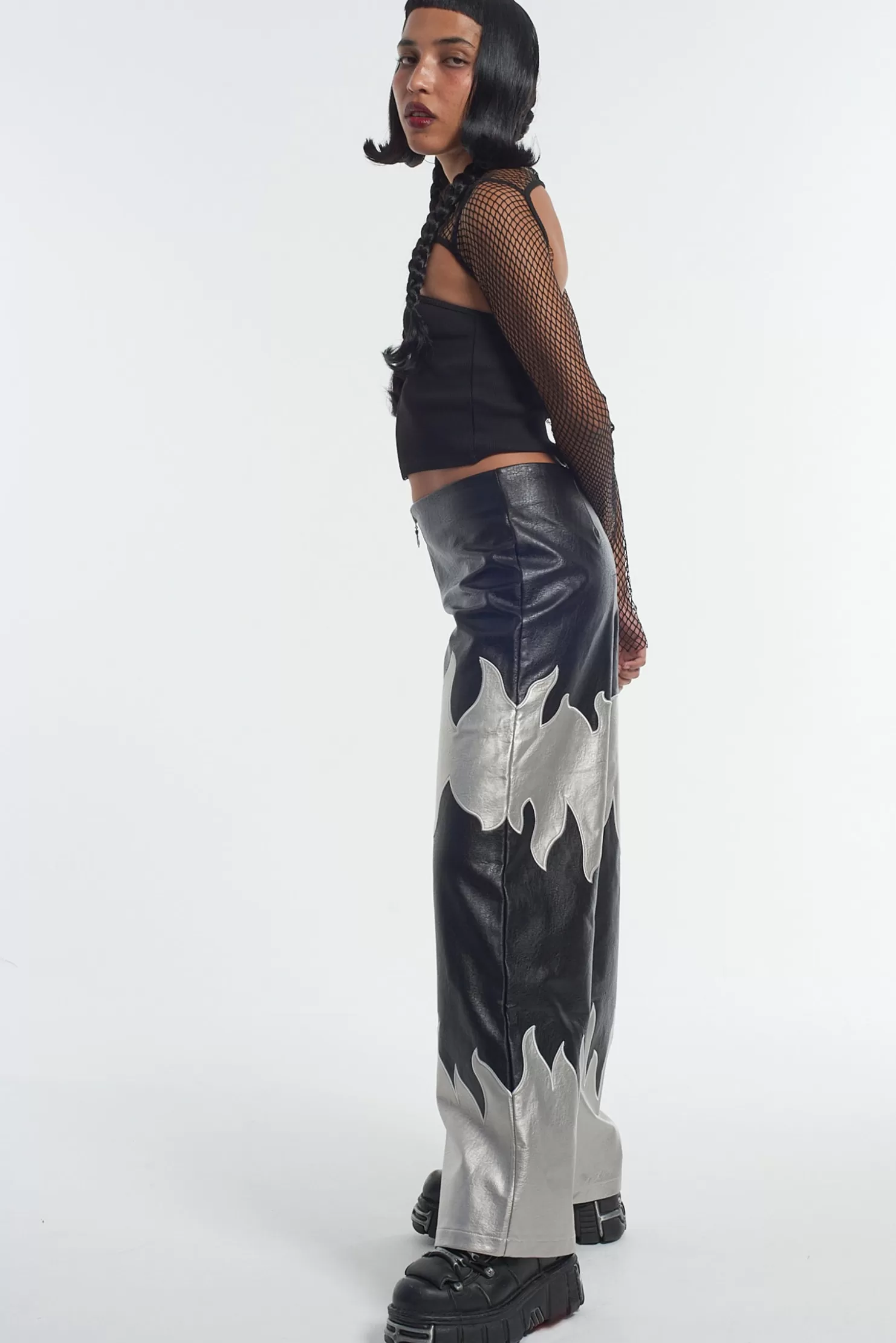 The Ragged Priest Black &Amp; Silver Pu Trousers With Flame Leg Detail Design.Low Risenon Stretch Pumatching Item Avail…