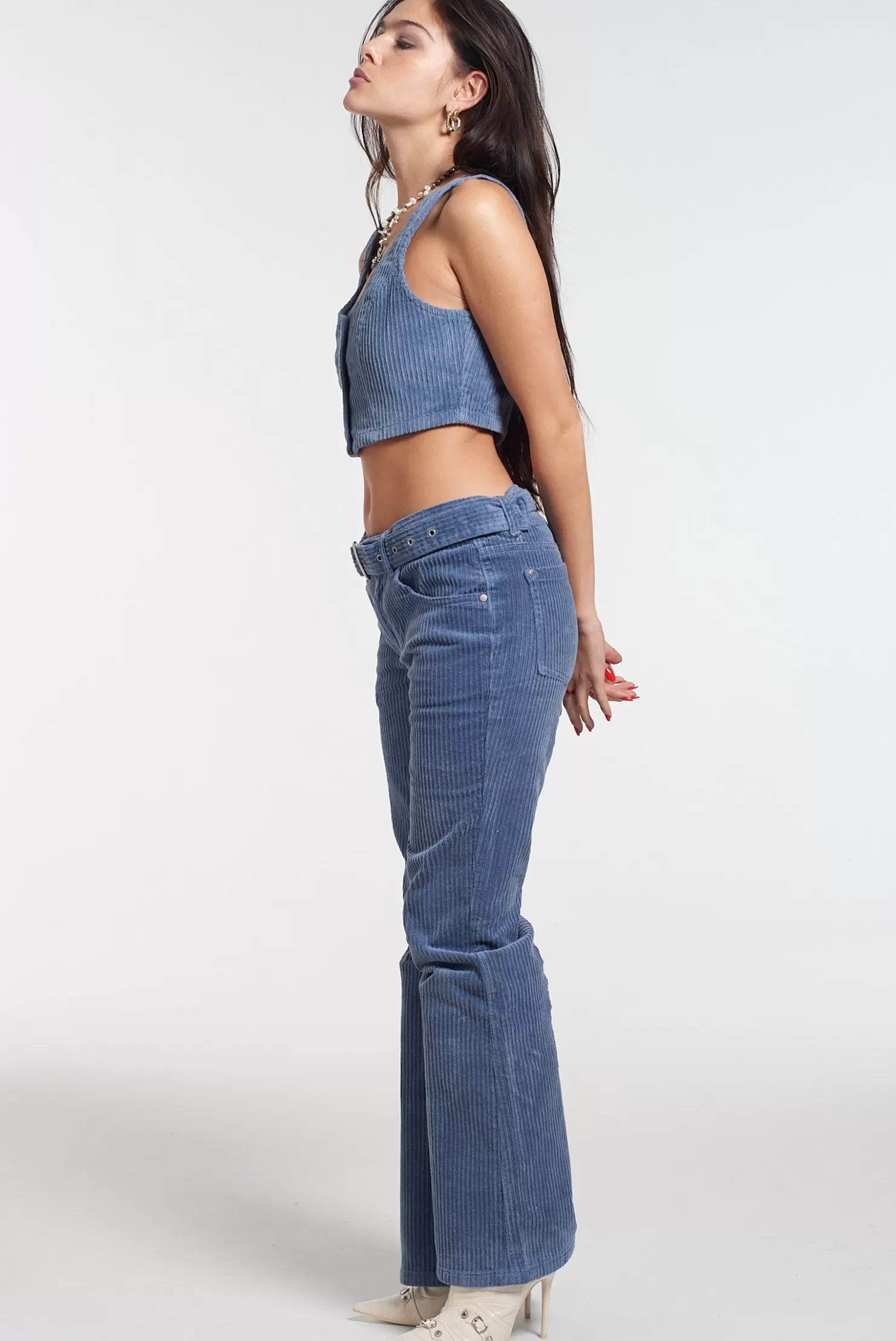 The Milk It Cord Nomad Waistcoat In Blue.• Select Your Normal Size• Matching Items Available • 97% (50% Recycled) Cotton And 3% Elastane Model Is 5’6 And Wears A Uk Size 8.