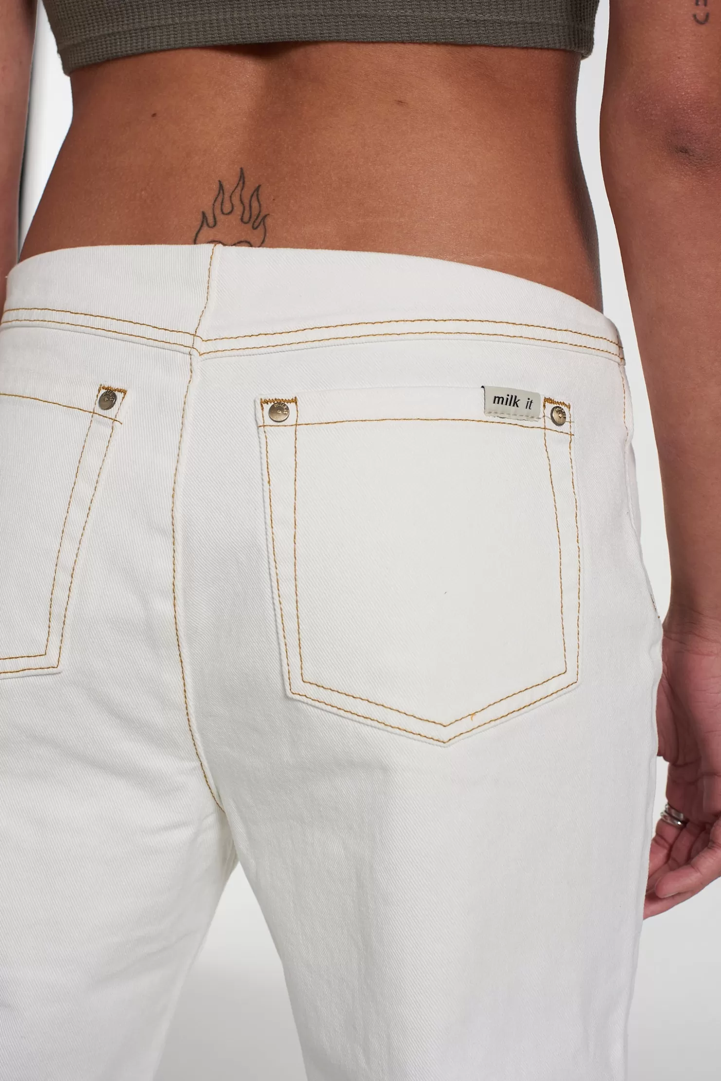 The Milk It Wilderness Lace Front Jean Are Our White Straight Leg Jeans With Cut Out Front Panel And Lace Up Detail.• No Stretch Rigid Denim• Select Your Normal Size• Low Rise• Contrast Stitching• Straight Leg• 100% Cotton• Signature Milk It Label On The Back Pocket• Side Waist Zip Detailmodel Is 5’7 And Wears A Uk Size 8.Products With This Label Are Made With 100% Organic Cotton, Which Is Produced Without The Use Of Any Synthetic Pesticides And Fertilisers Or Genetically-Modified Seeds. Most Organic Cotton Is Rain-Fed, Leading To Significant Water Savings, And Organic Agricultural Practices Also Ensure That Farmers Produce More Than One Crop, Which Supplements Their Food And Income And Helps Regenerate The Soil.