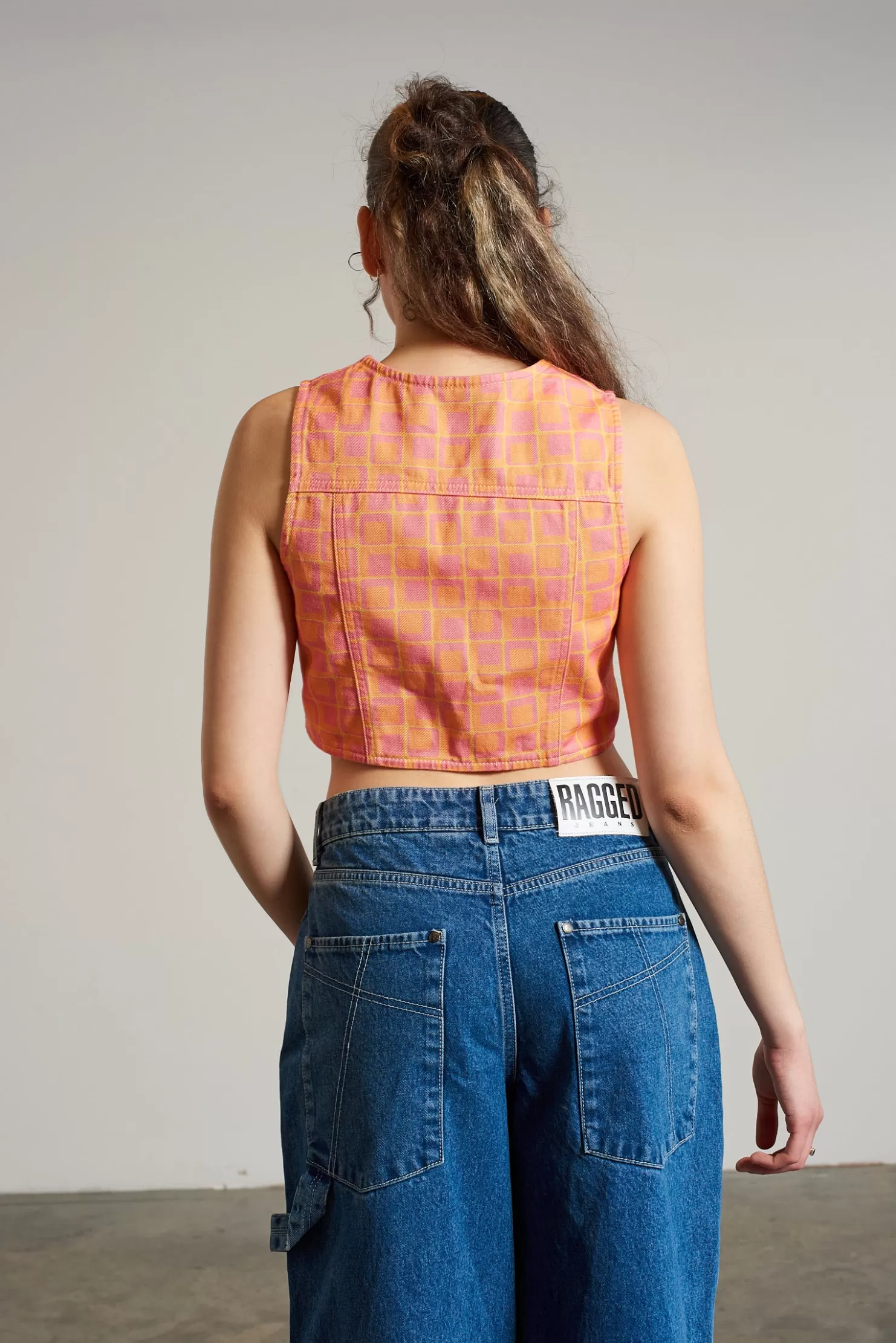 Ragged Jeans Pink And Orange Print Denim Cropped Waistcoat.100% Cotton.Machine Wash Inside Out On A Cool Wash At 30 Degrees.Available In Sizes Xs, S, M, L &Amp; Xl.Model Is 5’6 And Wears A Size S.