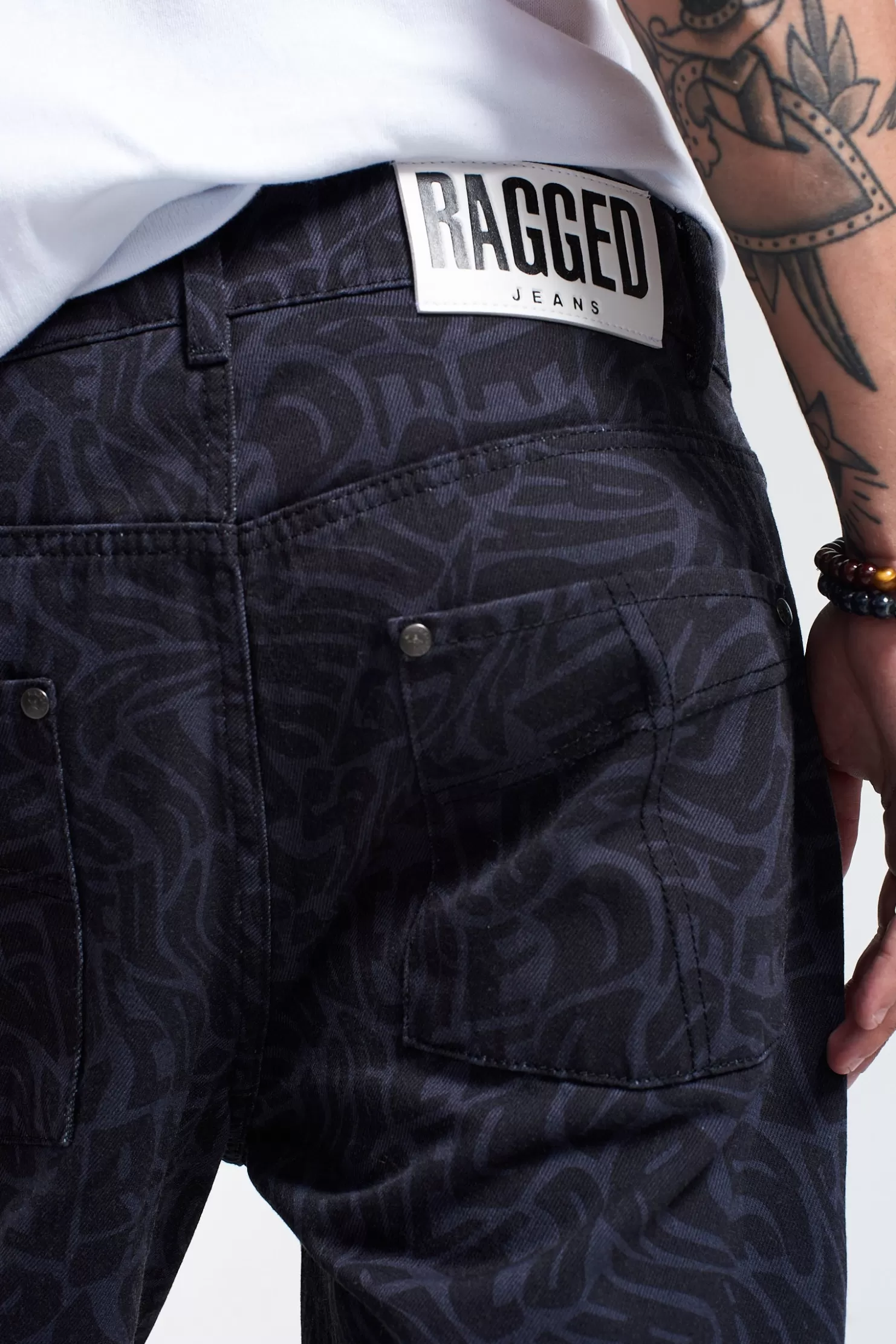 The Ragged Priest Men’S Logo Print Jeans In Charcoal And Grey.Non Stretch Rigid Denimstraight Legselect Your Normal Si…